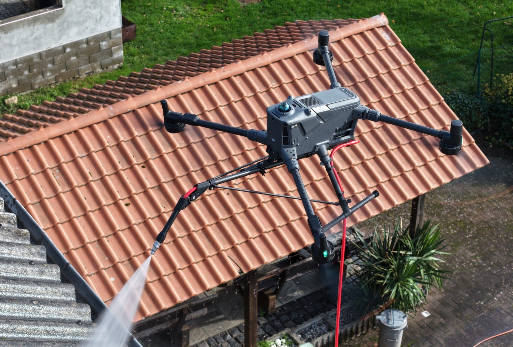 Unsere Reinigungsdrohne Reinigt Fassaden, Dächer, Solaranlagen,Werbebanner, Glasflächen usw..